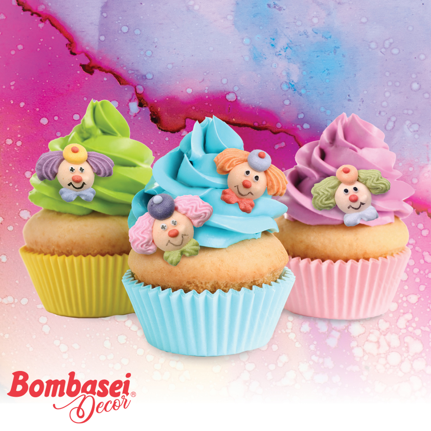 Handgefertigte Clown Köpfe, bunt aus feinem Zucker.