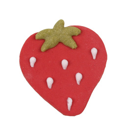 Handgefertigte rote Erdbeeren mit grünen Blättern aus Fondant