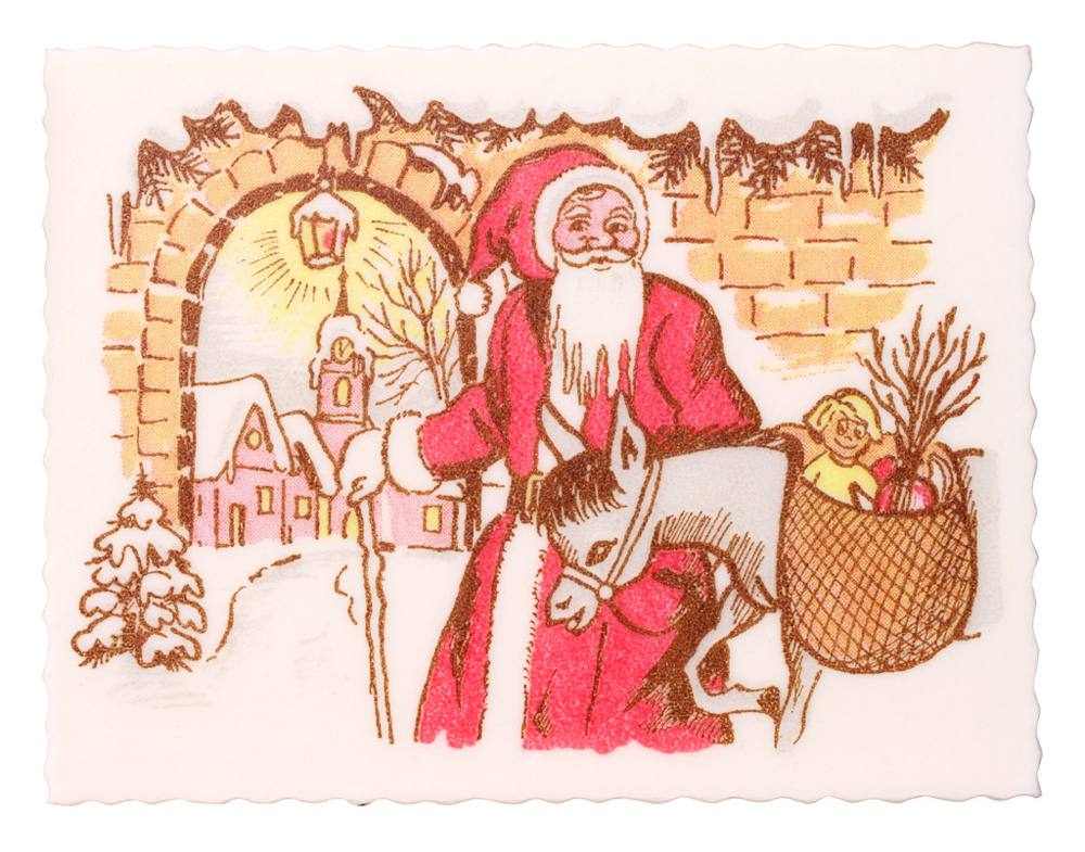 Bedruckt mit bunten Nikolaus-Motiven.